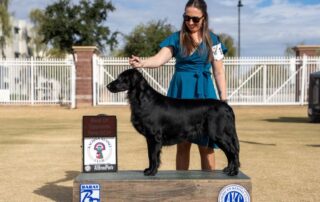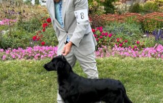 In 1978 we got our first flat coat, “Windy” La De Ja’s Chicago, who was Winners Bitch at the 1979 National Specialty.